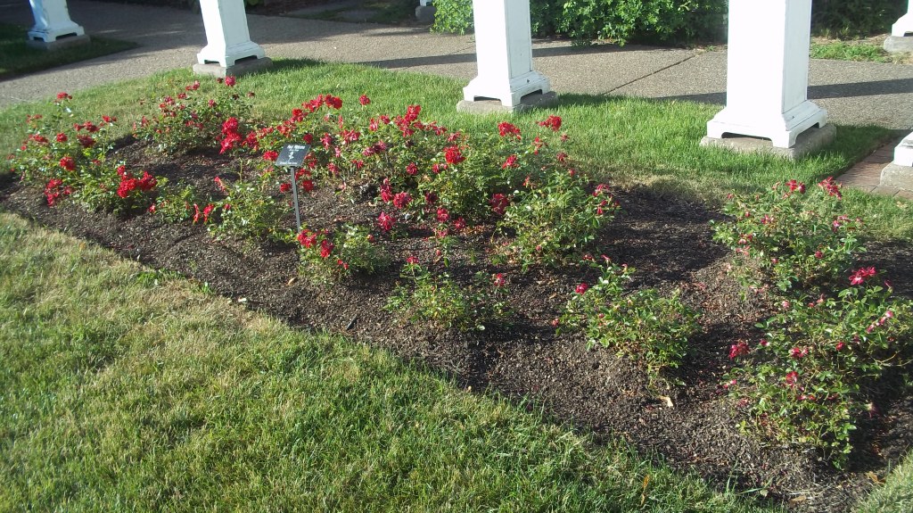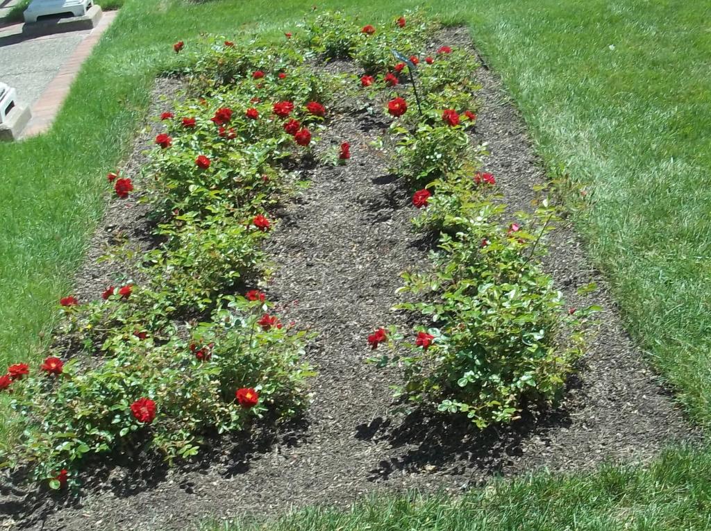 Not gardening all year, the Red Ribbon looked well taken care of. Unofficial it looks like Connie (on her last year) has the Rose bed up to par. The second picture show the newly (1 year) planted shrubs. Looks like the shrub is getting ready for its 2nd wave of blooms.